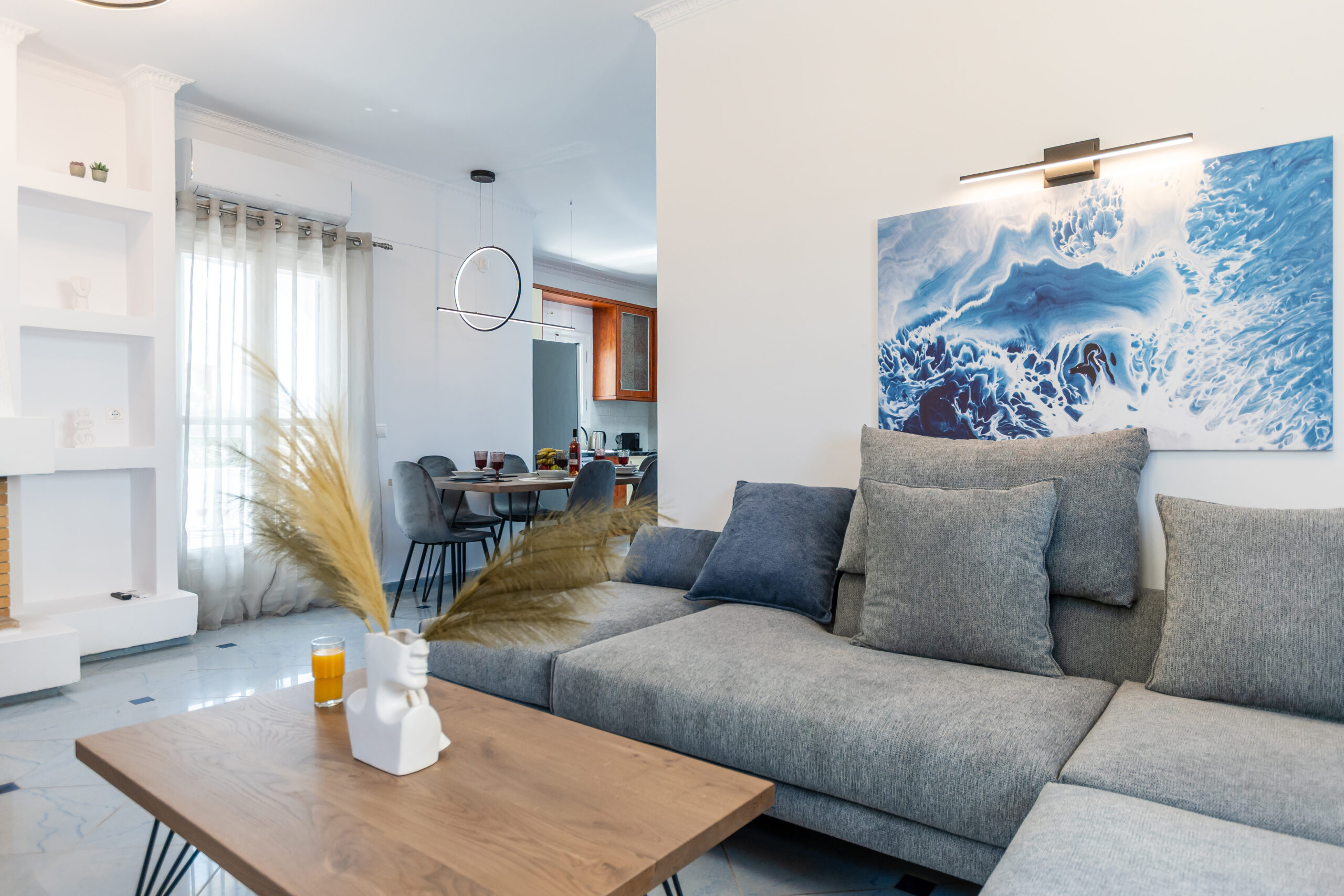 Πρόκειται για ένα ευρύχωρο και πλήρως εξοπλισμένο διαμέρισμα με 3 υπνοδωμάτια, 2 μπάνια, σαλόνι με τζάκι και σύγχρονη κουζίνα. Περιλαμβάνει παροχές όπως κλιματισμό, τηλεόραση επίπεδης οθόνης με streaming υπηρεσίες, πλυντήριο ρούχων και ηχομόνωση, εξασφαλίζοντας μια άνετη και λειτουργική διαμονή για οικογένειες ή παρέες.