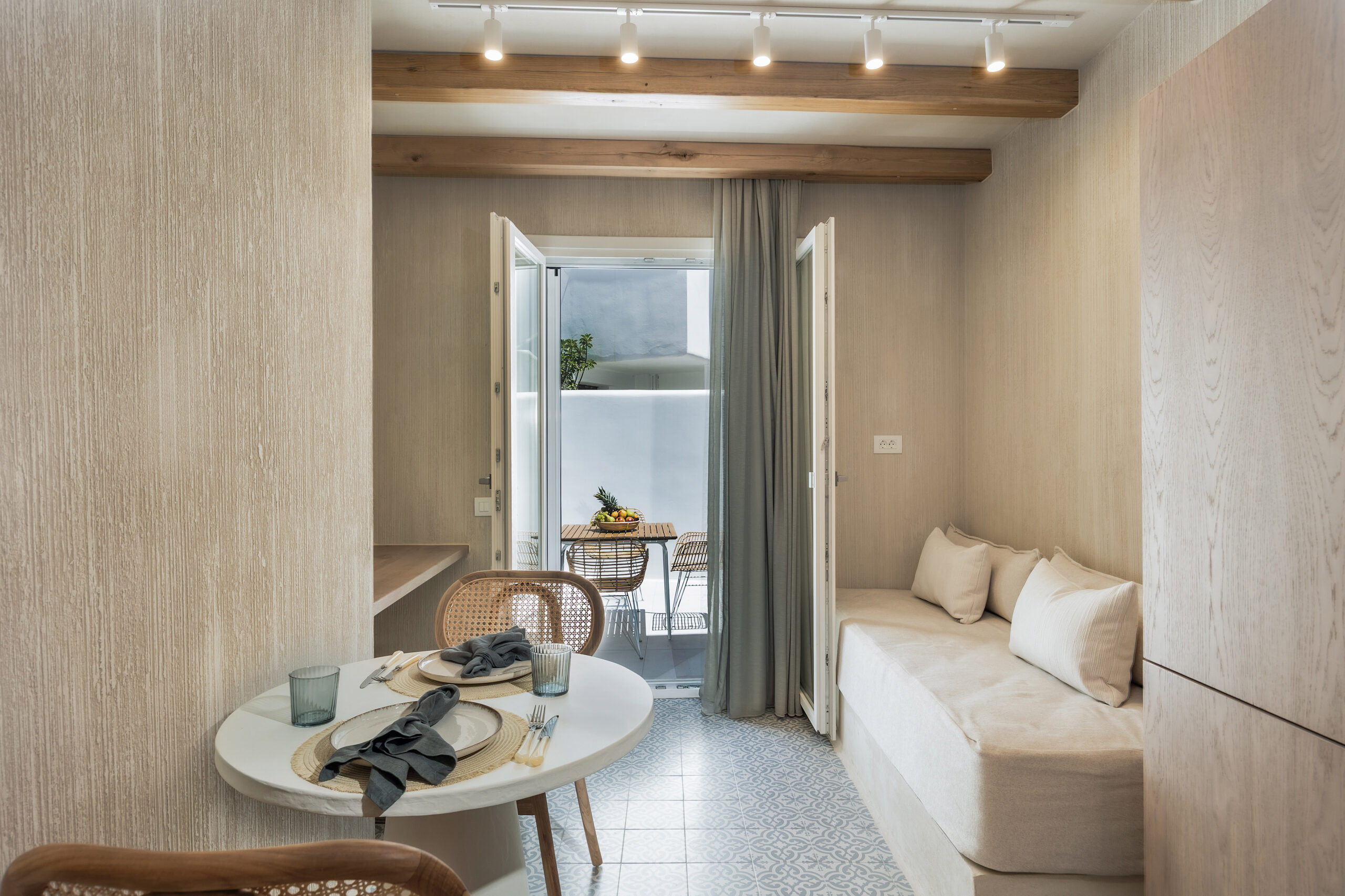 Το Two Times Naxos προσφέρει μια εκλεπτυσμένη εμπειρία διαμονής, μόλις 900μ από την παραλία του Αγίου Γεωργίου, στην καρδιά της Χώρας Νάξου. Δύο κομψές σουίτες 40τ.μ., με απαλές αποχρώσεις, φυσικά υλικά και άπλετο φως, συνδυάζουν άνεση και διαχρονική αισθητική, διαθέτοντας ξεχωριστό υπνοδωμάτιο, άνετο καθιστικό, πλήρως εξοπλισμένη κουζίνα και ιδιωτική βεράντα.